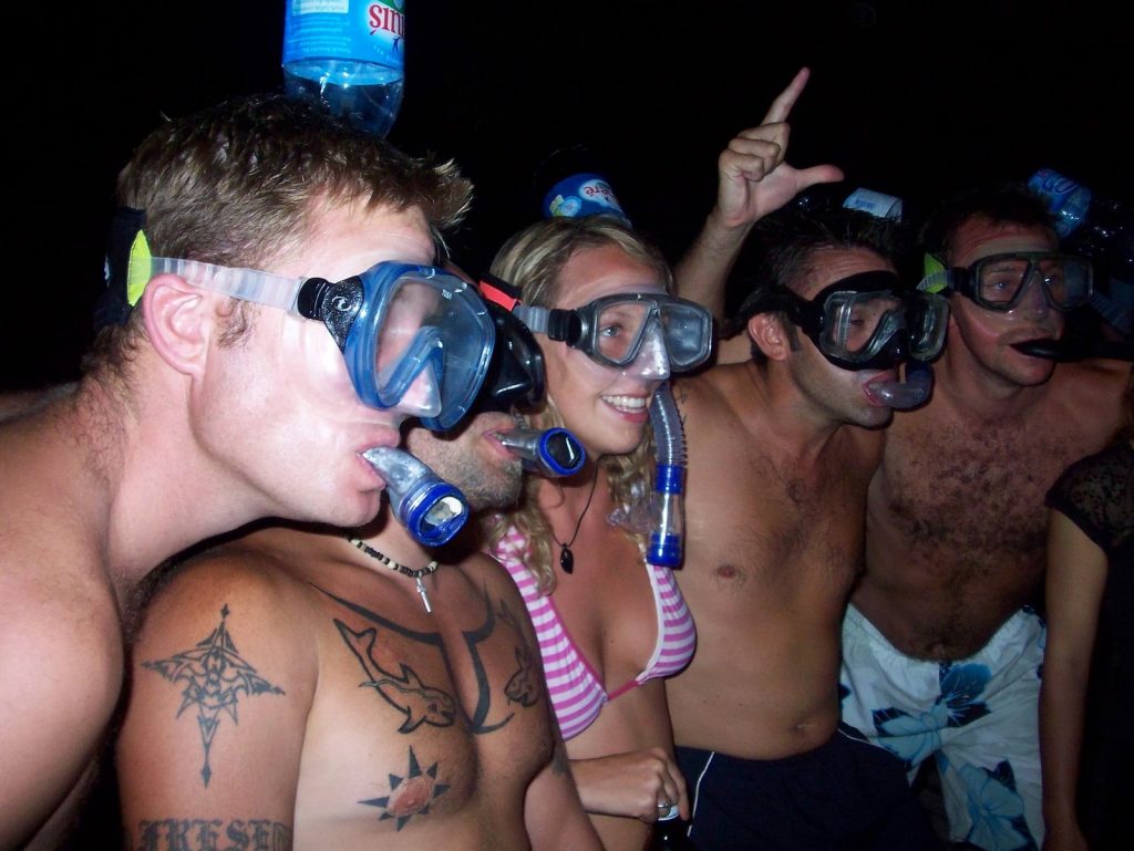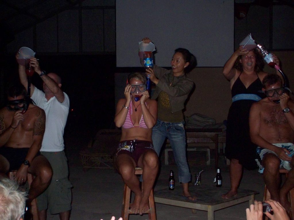 Next the snorkle is filled with a secret alcoholic concoction which from all accounts is pretty terrible. Then once all the liquid has been consumed, they spin around 10 times and dash into the sea and back. The first one back is the winner.!