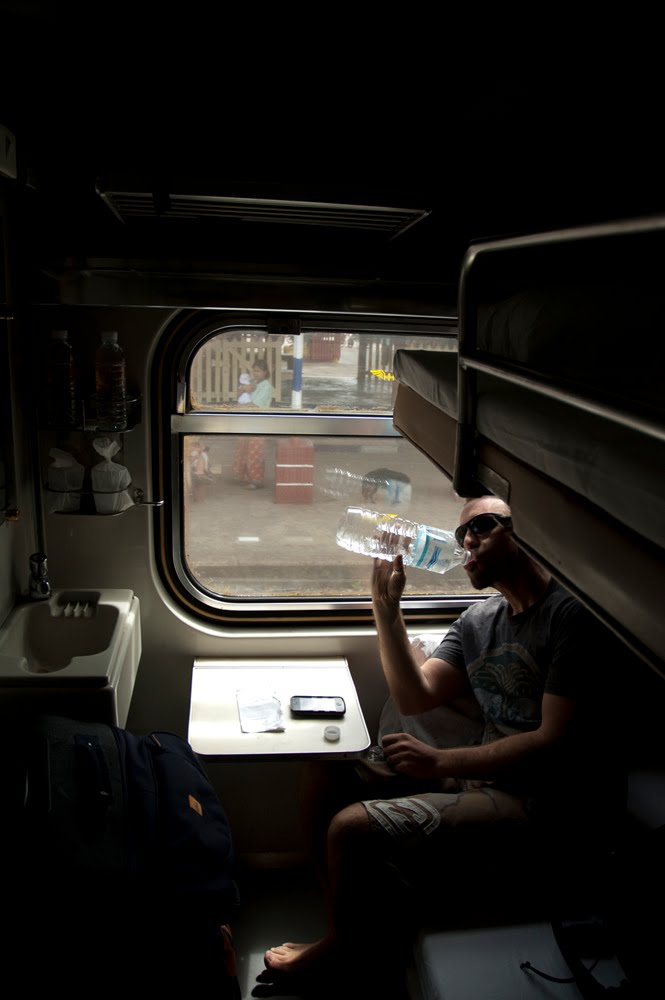 After being eaten alive by mozzies, we decided to head back to the train station to confirm our booking. As we still had another hour or so to kill, we headed across the road to another bar where a terrible Thai band playing. We sat and had a couple of ‘Tigers’ (beers) and about 5 minutes before we left, we bumped into Bob one of the PADI course directors. What a small world! The train eventually turned up 30 minutes late and we were both eager to get to our AC sleeper cabin as we were both very tired